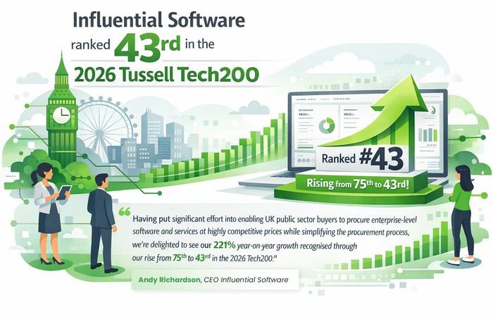 We’re proud to share that Influential Software has moved into the upper quartile of the 2026 Tussell Tech200, Tussell’s annual list recognising the fastest-growing technology suppliers to the UK public sector.